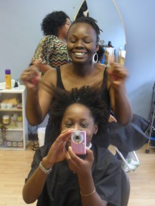 Just after the wash. I think Stacey is surprised by the length of my hair. Shrinkage is serious.