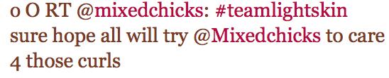 I think once you’ve decided to use a WELL-KNOWN, historically divisive term, you HAVE knowingly chosen to exclude certain people. “teamlightskinned” is a divisive term, therefore mixedchicks is being divisive in it’s use of it. Period.